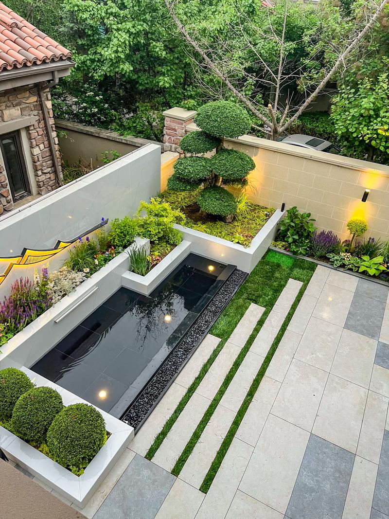 园林景观设计中,涉及到美学、人文、绿化、风水等多方面知识,一般以建筑为硬件,绿化为软件,水景为网络,小品为节点,进行整体的融合和搭配。